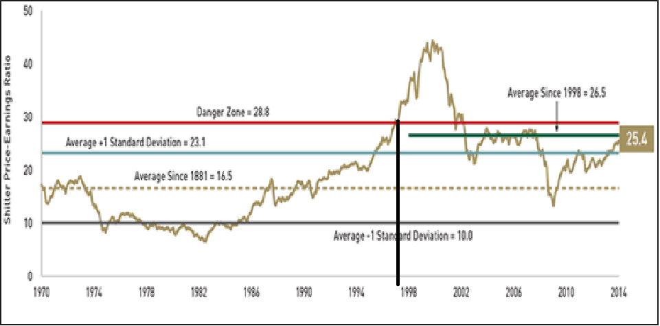 Es ist mal wieder soweit: Die Crashpropheten haben lange gesucht und nun wieder eine neue Sau gefunden, die durchs Dorf getrieben wird. Es handelt sich um das Shiller KGV, ein Modell von Nobelpreisträger Shiller, welches die wahre Bewertung des Aktienmarktes besser indizieren soll als das herkömmliche Kurs-Gewinn-Verhältnis. Soweit so gut. In den letzten Wochen wurde eben jenes Shiller KGV immer wieder bemüht, um vor einem Crash zu warnen, der am Aktienmarkt bevorstehe. Es geht nicht darum, das Shiller KGV (CAPE) zu kritisieren. Es wurde von einem cleveren Menschen ausgearbeitet und hat absolut seine Berechtigung. Die Frage, die sich stellt ist, können Sie als Anleger oder Trader irgendeinen Nutzen aus der aktuellen Indikation ziehen, die einen Wert von 27,9 anzeigt?