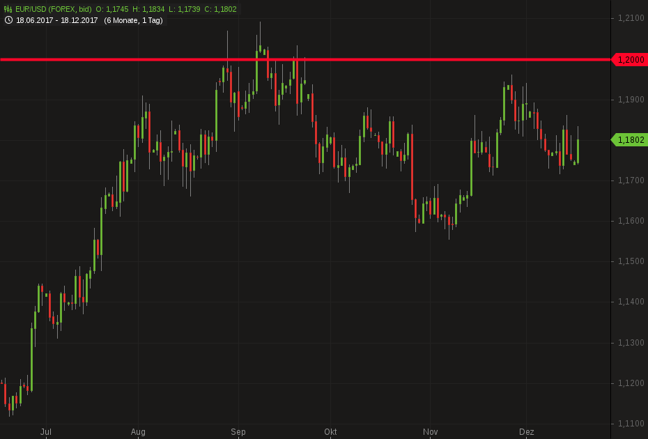 Am 15.11.2017 haben wir einen Discount Put Optionsschein auf den EUR/USD gekauft. Mit diesem Discount Optionsschein spekulieren wir darauf, dass das Währungspaar am Bewertungstag unterhalb von 1,20 USD notiert. Seit unserem Kauf kann die Position bereits zulegen und zudem wurde auch der kurzfristige Aufwärtstrend nach unten verlassen. Daher gibt es auch hier aktuell keine Änderung.