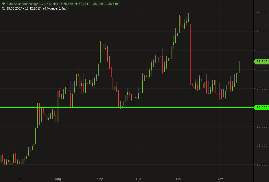 Die Aktie von SMA Solar kann weiter zulegen. Davon profitiert natürlich auch unser Discount-Zertifikat. Aktuell liegen wir bereits +4,89% im Plus, halten die Position aber weiterhin.