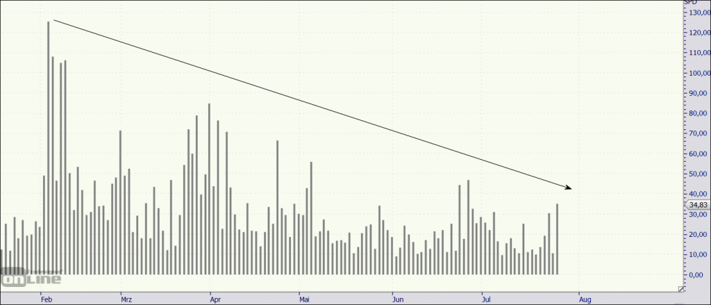 Historisch betrachtet zieht die Volatilität ab Mitte Juli wieder deutlich an.