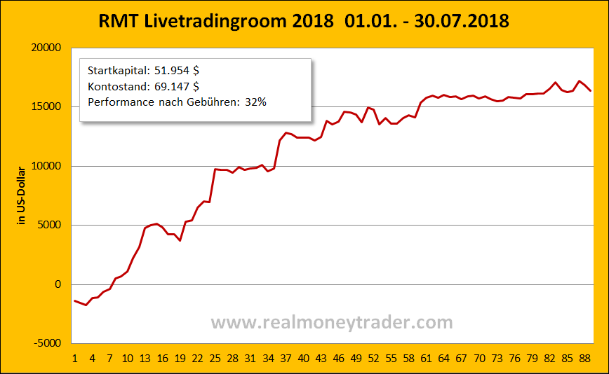 Seit Jahresbeginn legte das Echtgeld-Tradingkonto um knapp 17.000 Dollar auf 69.000 Dollar zu. Da die meisten Trades auch mit CFD´s umsetzbar sind und die größten Profite aus länger gehaltenen Day- und Swingtrades stammen, ist die hiesige Strategie auch skalierbar für kleinere Konten. Trader, die sich von den Trades inspirieren lassen, setzen einfach im entsprechenden Verhältnis weniger ein, handeln also Bruchteile eines Lots. Hinweis: Seit gestern ist eine Position offen, die 1500 Dollar hinten liegt. Dieser Buchverlust ist noch von dem oben genannten Ergebnis abzuziehen.
