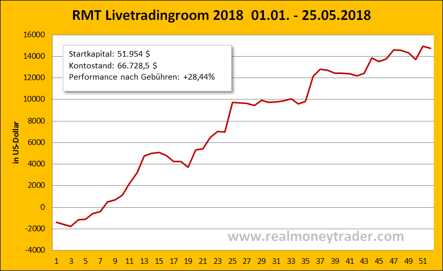 Würden Sie sich in ein Flugzeug setzen, dessen Pilot ein paar Bücher über die Fliegerei gelesen hat und ein paar Stunden in einem Simulator geübt hat? Vermutlich nicht! Im Trading hinterfragen viele Börsianer jedoch kaum, ob ihr Mentor überhaupt live und mit Echtgeld handelt oder nur Dispolisten führt und im Nachhinein erklärt, was er wo gemacht hätte. Weil viel geredet wird und zudem ein leider sehr unrealistisches Bild vom hauptberuflichen Börsenhandel eines Traders gezeichnet wird, hatten wir auf RealMoneyTrader.com vom 02. April bis 25. Mai 2018 unsere RealMoneyTrader.com Tradingwochen (Live), in denen der erfahrene Profi-Trader René Wolfram seinen täglichen Handel mit allen Aktionen live per Webinar offenlegte und auch Nicht-Kunden über einen angemessen langen Zeitraum die Möglichkeit gab, jenen Live-Tradingroom zu besuchen, in dem er seit nunmehr 8 Jahren täglich live vor seinen RealMoneyTrader-Klienten handelt. In dieser Zeit erlebten die Teilnehmer die täglichen Routinen, die zu festen und somit planbaren Zeiten stattfinden, wie zeit- und nervenschonend die Umsetzung von Renés Strategien in der Praxis abläuft, aber auch, wie er sich eines ganzen Bündels an Setups bedient, die zu unterschiedlichsten Tageszeiten handeln.