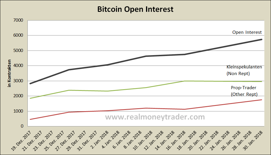 Das Open Interest ist zuletzt weiter angestiegen. In dem Fall aber durch Käufe der Other Reportables, also der erfahrenen Prop-Trader. Steigendes Open Interest durch Käufe von erfahrenen Händlergruppen ist grundsätzlich eher bullish zu werten.