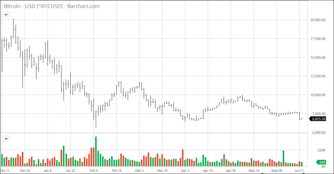 Wer den Bullenmarkt bei den Technologie-Aktien Ende des 20. Jahrhunderts erlebte, den wird es doch ein Stück weit verwundern, wie schnell die Euphorie und der Hype um die Krypto-Währungen verflogen sind. Kochten damals die Emotionen hoch, so mutet der Rückgang des Bitcoin eher an, wie ein Begräbnis im kleinen Kreis. Positiv für die noch vorhandenen Bitcoin-Bullen ist jedenfalls: Charttechniker wollen ein Kursziel von 1.000 Dollar ausgemacht haben, wenn das fallende Dreieck sich bei 6.000 Dollar gen Süden auflöst.