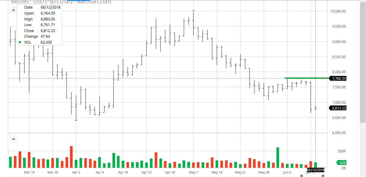 Solange der Kurs unterhalb der besagten Marke verweilt, besteht die akute Gefahr für ein weiteres Abgleiten. Nach wie vor stellen schließlich die Kleinspekulanten einen Großteil der Long-Positionen im Open Interest, womit jederzeit eine Panikwelle den Preis dynamisch gen Süden schicken kann. Nach unten sind (ohne ein Umkehrmuster) noch 4.500-5.000 Dollar realistisch.
