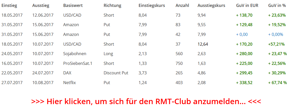 Alle bisher abgeschlossenen Trades im RMT-Club: