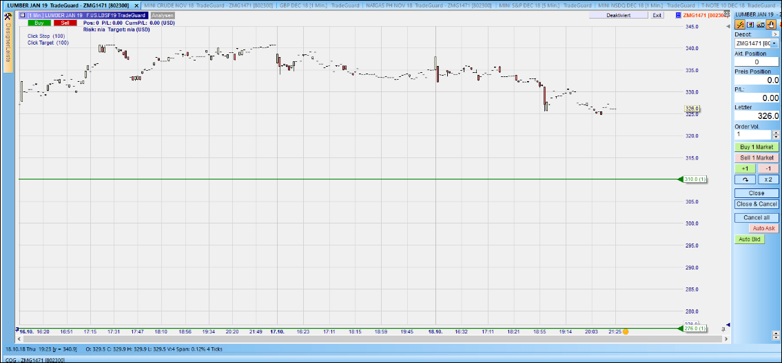 Bauholz (Lumber) hat sich exakt nach dem iin der Trading Ausbildung RW Mentoring geschulten und für alle Ausbildungsteilnehmer auf Lebenszeit verfügbaren Forecast entwickelt und sich seit dem Mai-Hoch halbiert. Inzwischen sind wir unter den langfristigen „Fair Value“ gefallen, der bei 350-365 Dollar liegt. Wie Sie dem Screenshot meiner Handelsplattform entnehmen können habe ich bei 310 und bei 276 Dollar jeweils eine Kauforder für einen Lumber-Kontrakt (Januar) im Markt. Ziel wird dann 350 Dollar sein, was mindestens 4400 Dollar Profitziel bedeutet.