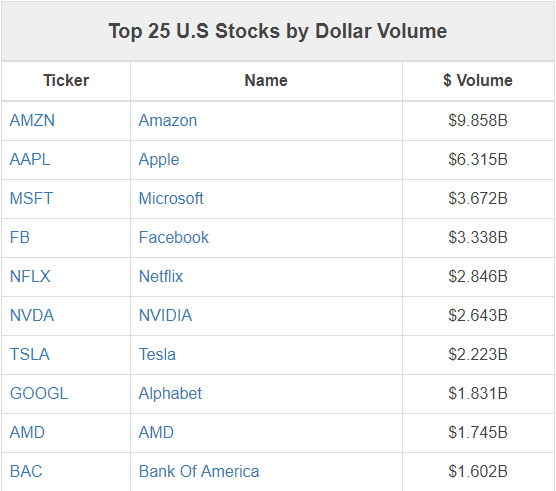 Inzwischen haben wir an der Spitze der Market Cap, aber auch beim Dollar Volume fast durchgängig Werte aus dem Technologiebereich, die naturgemäß stärker von fremdem Kapital abhängig und anfällig für Zinsanstiege sind. Hier sehen wir ein ganz erhebliches Gefahrenpotenzial. Der Crash von Facebook vor einigen Monaten lässt sich hier als mahnendes Beispiel heranziehen. Zwar sind Amazon, Apple und Facebook etablierte und kaum mehr weg zu denkende Unternehmen. Aber sobald es sich wirtschaftlich abschwächt und die Konsumstärke der Amerikaner rückläufig wird, trifft es diese Aktien am härtesten. Und das kann den breiten Markt schwer belasten.