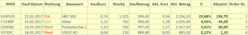 Es scheint zumindest vorerst so, als haben diverse Märkte ihren Modus gewechselt. Da wir mit den jüngsten Positionen genau darauf gesetzt haben und größeres Potenzial ersichtlich ist, behalten wir alle Positionen unverändert bei