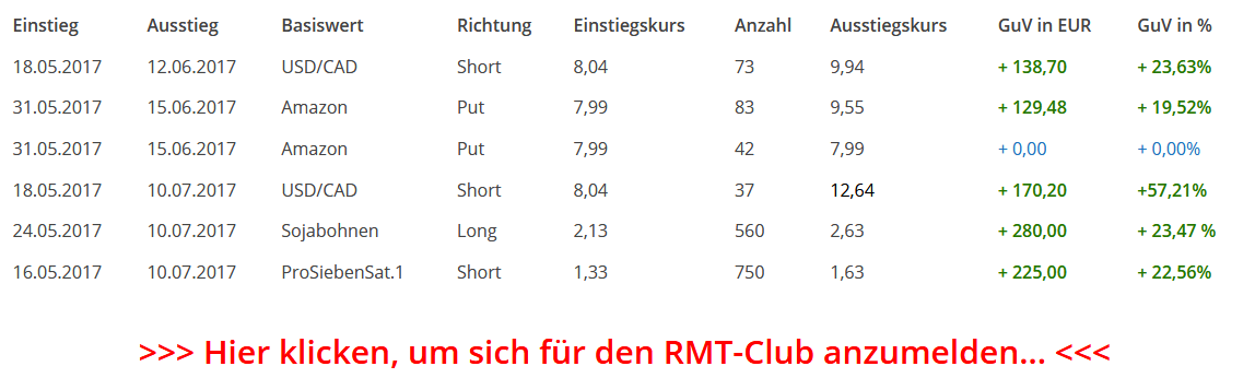 [RMT-Club]: Geschlossene Positionen & Angebot