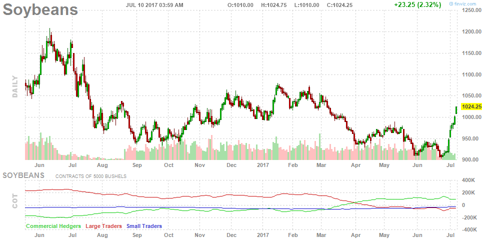 Der Sojabohnen-Preis steigt seit einigen Tagen stark an (siehe Chart). Wir nehmen daher nun Gewinne mit und verkaufen die komplette Position.