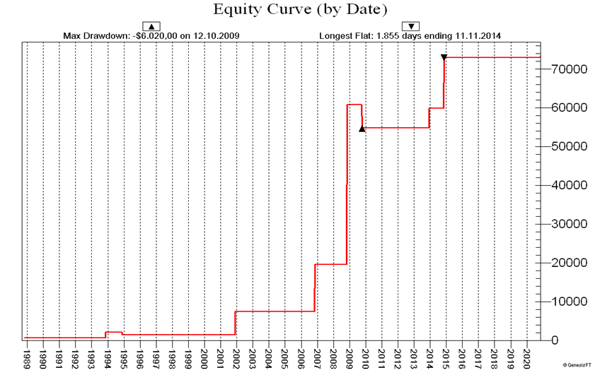 Da es sich um konditionierte Ausbruchs-Trades handelt, bei denen Faktor Zeit UND Preis stimmen müssen, kommt es in manchen Jahren zu keiner Ausführung der platzierten Order und somit zu keinem Trade. Würde man nur ein PowerBreakout-Setup in einem Markt handeln, so würde teilweise jahrelang nichts passieren. Man verlöre nichts, würde aber auch nichts gewinnen. Darum ist es wichtig, diese Konditionierung nicht zu brechen. Die PowerBreakouts sollten idealerweise als Bündel, als eigenständiges Portfolio innerhalb Deines Trading-Portfolios gehandelt werden. Insgesamt gibt es 95 PowerBreakout-Trades mit einem simplen, absolut präzisen Regelwerk in dem folgenden Modus:
