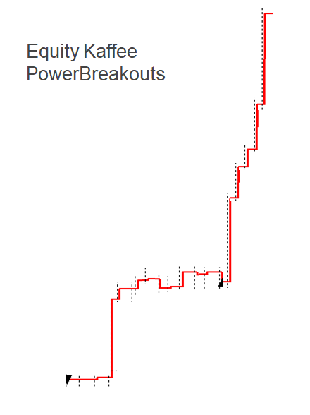Die nachfolgende Grafik zeigt die Kapitalkurve eines PowerBreakout-Setups auf den Kaffee-Future. Kaffee ist einer der Märkte, die auf Trend am besten zu handeln sind. Die Stetigkeit in der Kapitalkurve verwundert daher nicht.