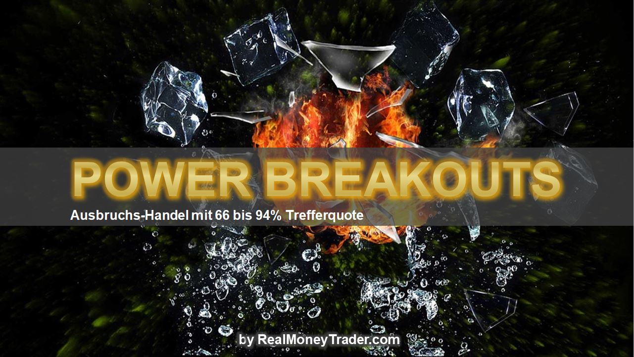 Wenn Trader Breakout-Strategien anwenden, dann bringt diese Handelstechnik unangenehme Nebeneffekte mit sich, die am langen Ende dazu führen, dass nur Vollzeittrader mit viel Erfahrung und einem gewissen Risikobewusstsein den Ansatz konsequent anwenden. Bei den meisten Ausbruchs-Strategien liegt die Trefferquote bei 30-33%. Das ist aus mathematischer Sicht, und wenn man ein üppig bestücktes Konto hat, kein Problem. In der Praxis sind es aber Menschen mit Emotionen, Ängsten, Begehrlichkeiten, und meist einer stark limitierten Kapitaldecke, die eben Angst bekommen oder finanziell unter Druck geraten, wenn Ausbrüche serienweise fehlschlagen. Ich habe in bald 24 Jahren Vollzeithandel natürlich auch diverse gängige Breakout-Techniken ausprobiert, bin damit aber nie wirklich zufrieden gewesen. Mir fehlte stets etwas. Und dieses fehlende Puzzle-Teil kam nach langer Zeit, durch reichhaltige Erfahrung, ein breites Fundamental-Wissen, sowie umfangreiche Kenntnisse in der Strategie-Entwicklung, dazu. Das Ergebnis sind meine PowerBreakouts, die das Breakout-Trading für mich revolutionieren.