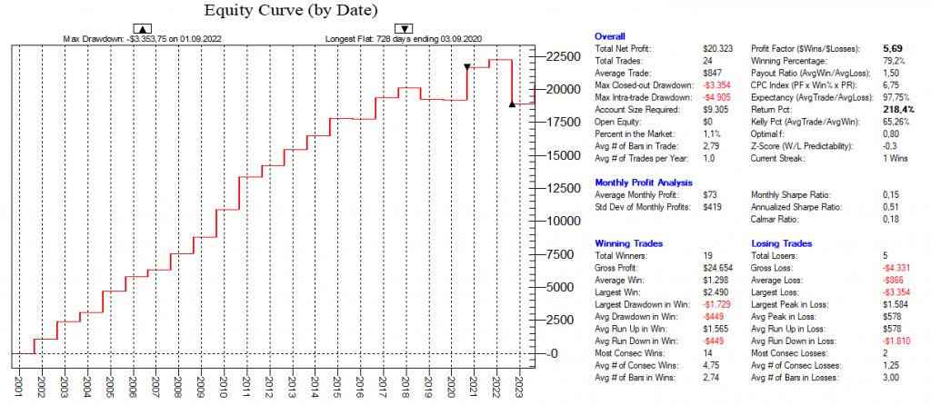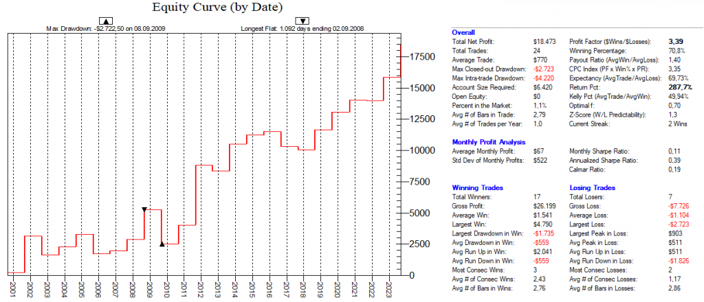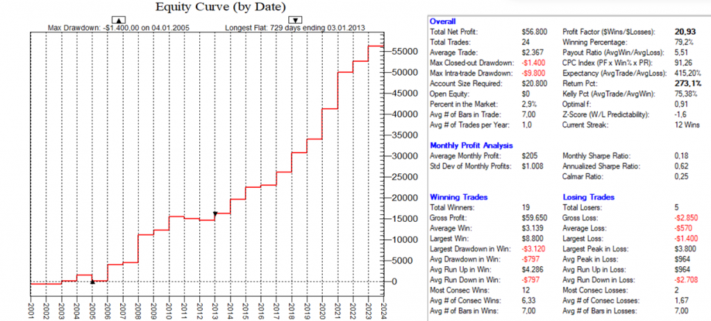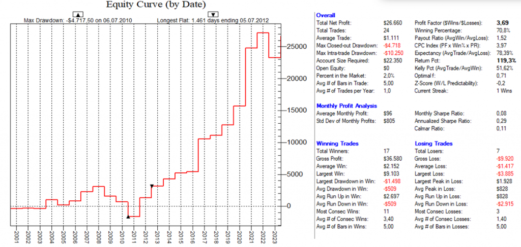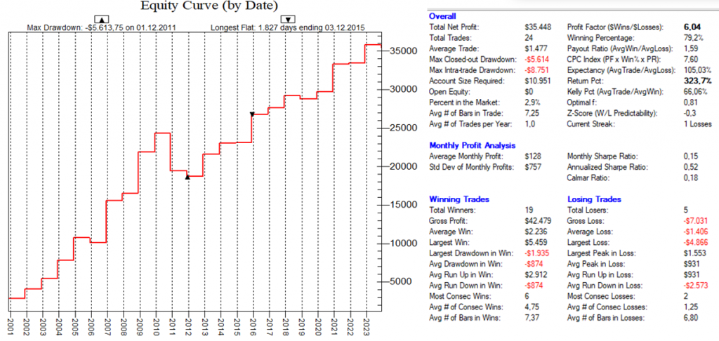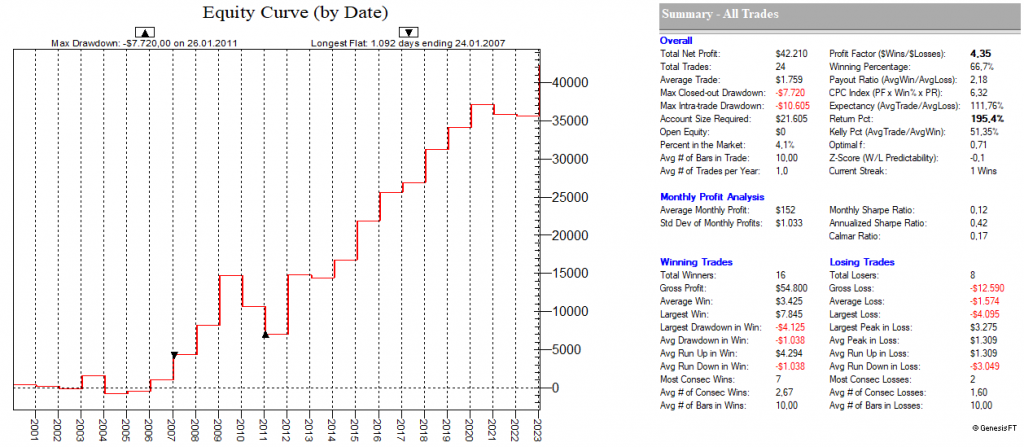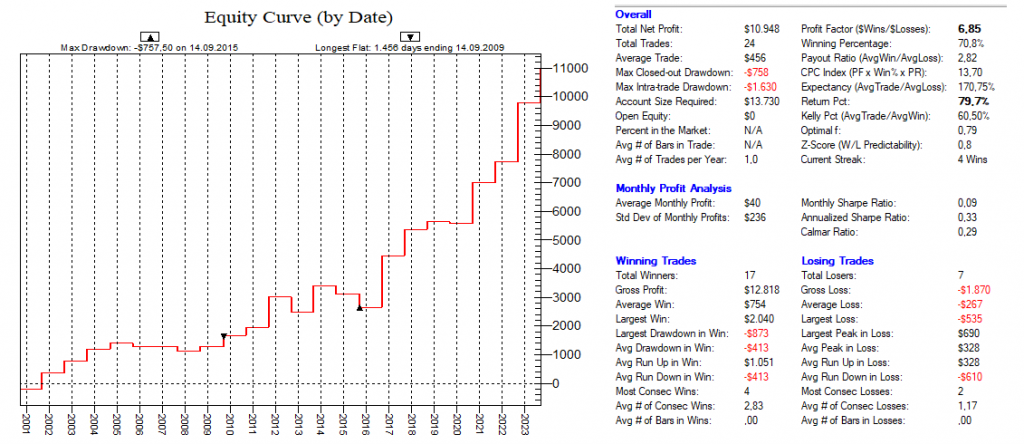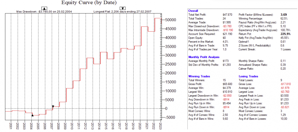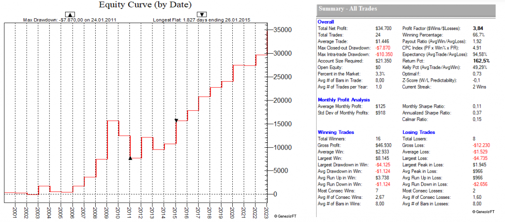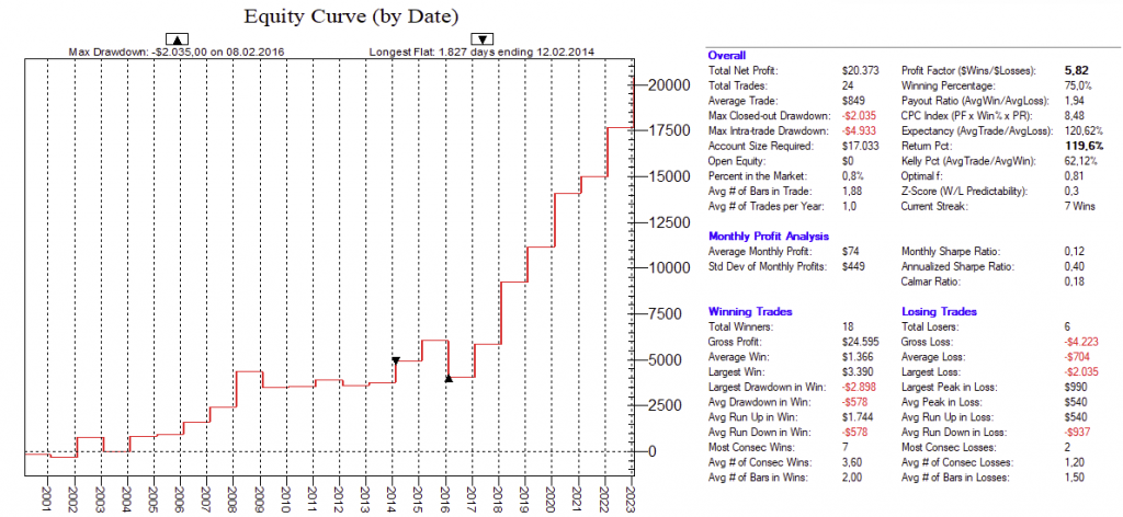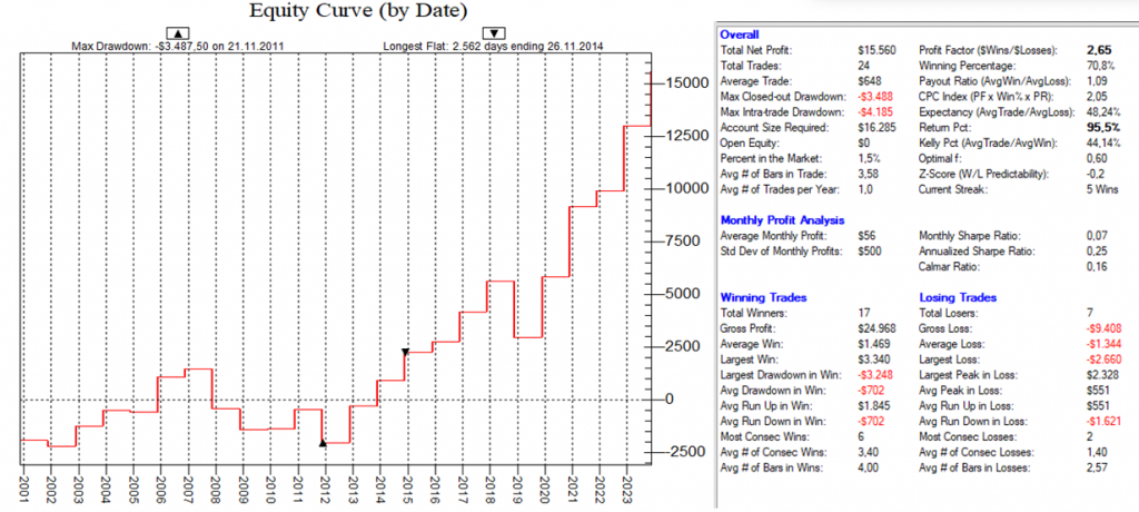 Dadurch, dass man hier mit dutzenden von Setups die Feiertags-Effekte dauerhaft ausnutzt, ist ein Streuungseffekt gegeben, der den Gesamt-Draw-Down eines „Feiertags-Portfolios“ nochmals abmildert.