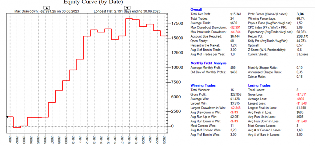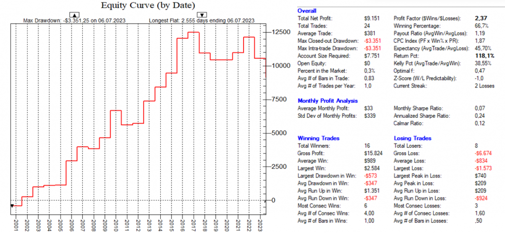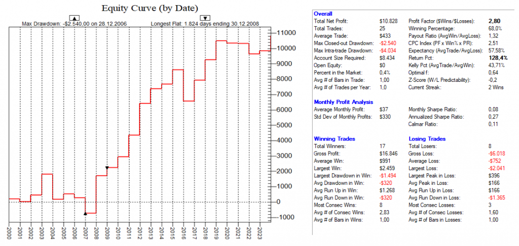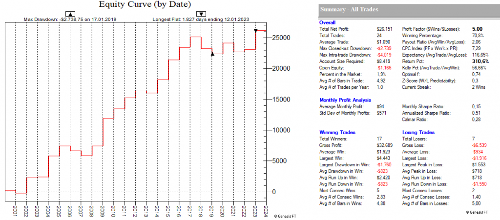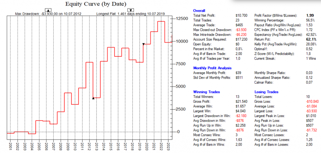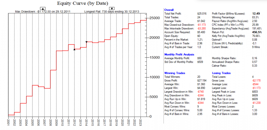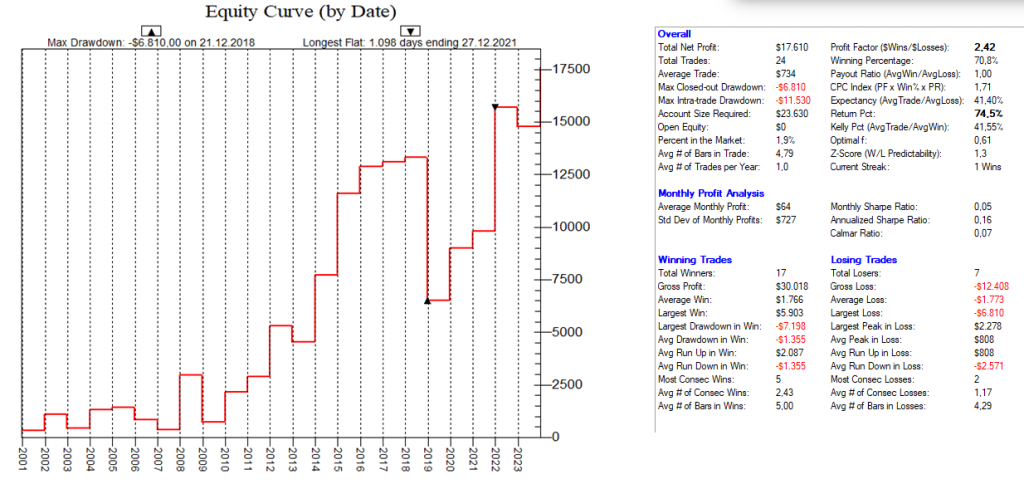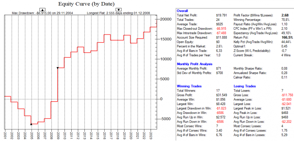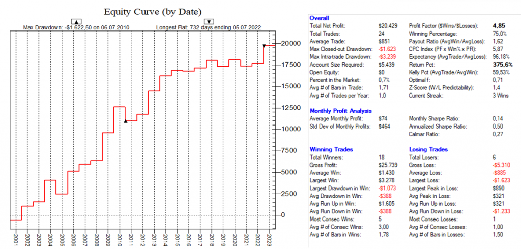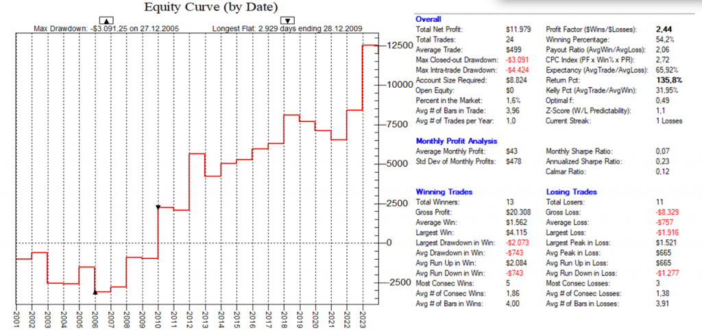 Dadurch, dass man hier mit dutzenden von Setups die Feiertags-Effekte dauerhaft ausnutzt, ist ein Streuungseffekt gegeben, der den Gesamt-Draw-Down eines „Feiertags-Portfolios“ nochmals abmildert.