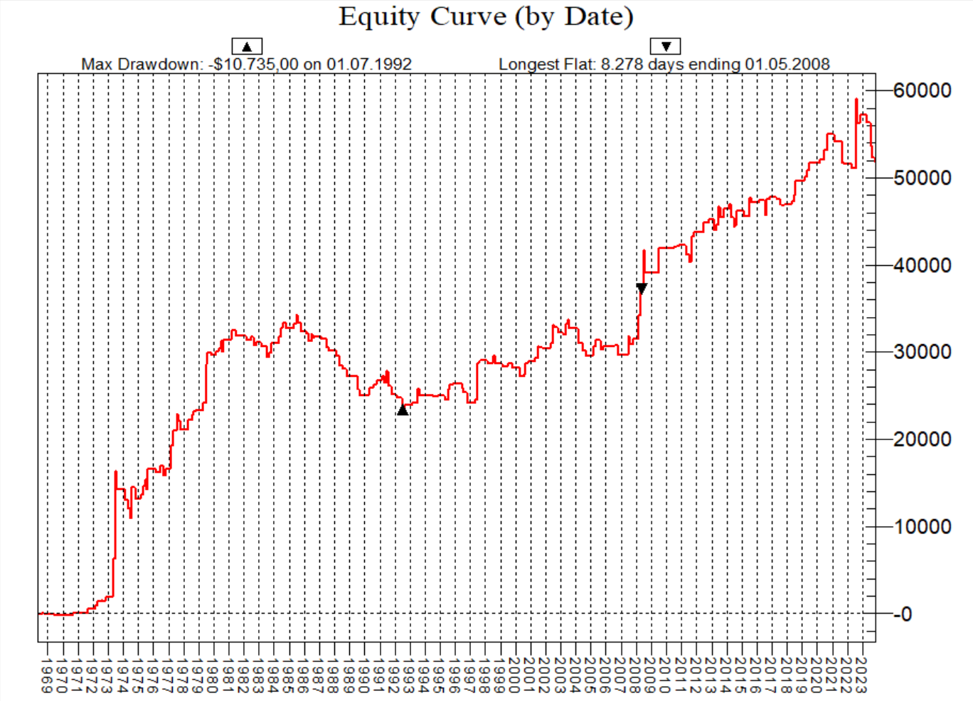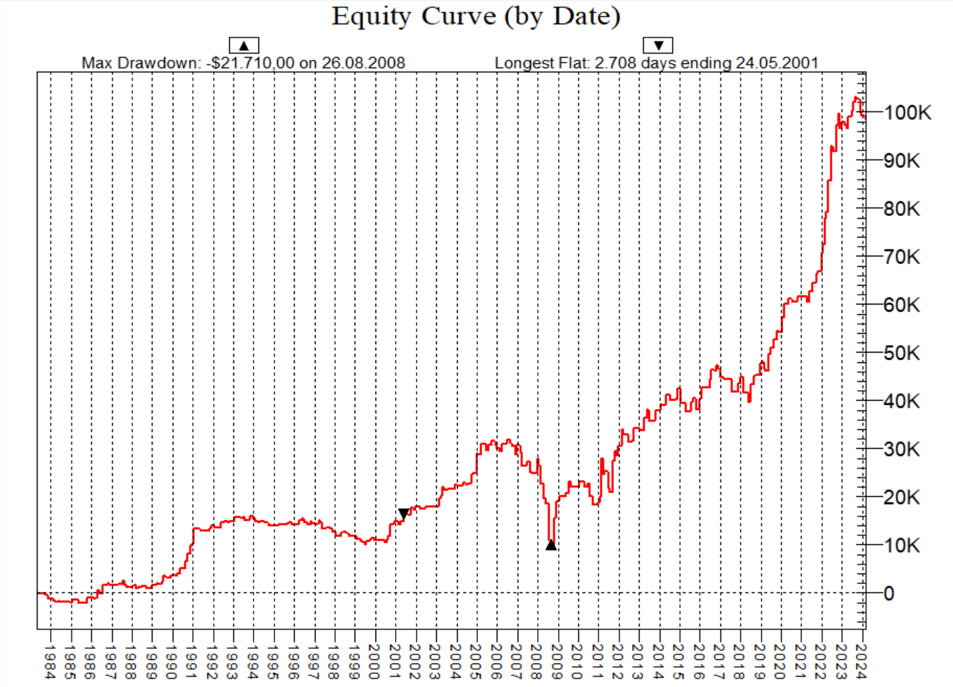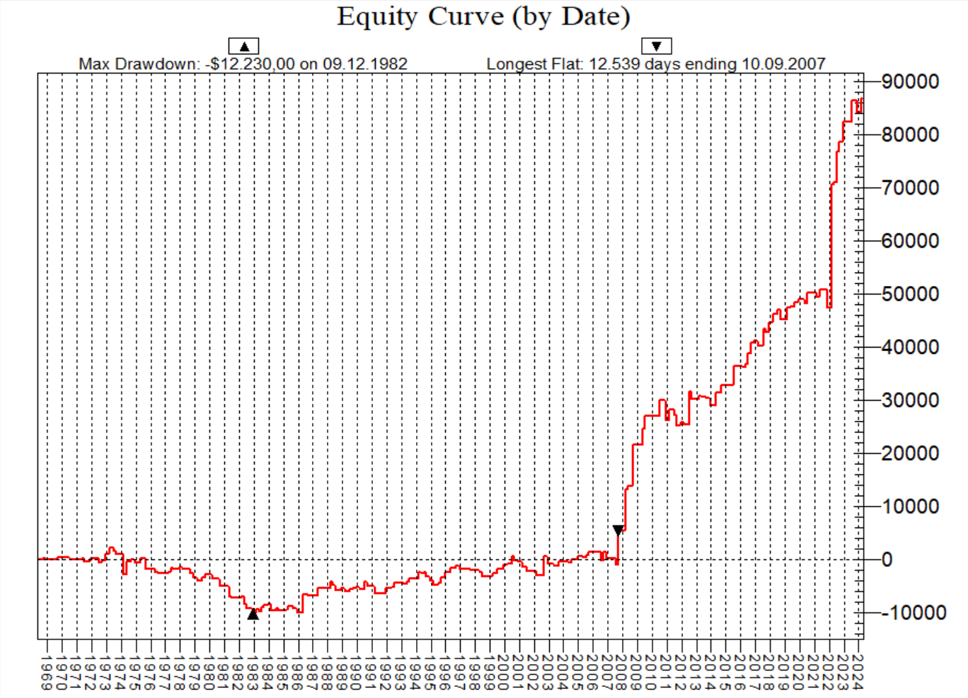 Genau dazu erlernen die Teilnehmer unseres nächsten Thementag-Seminars (online) 21 konkrete Setups, die zusammen 1,23 Millionen Dollar Gewinn erzielt haben. Exemplarisch haben wir hier einige Equity-Kurven einzelner Setups für Sie dargestellt.