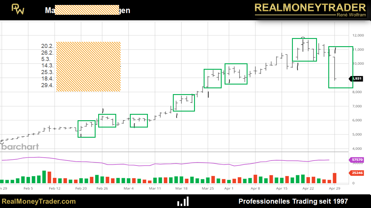 Hinter solchen Bewegungen stehen fundamentale Prozesse, die mit der Finanzierung von Positionen, mit den Margins der Börse, mit Abrechnungsterminen und Lieferperioden zu tun haben. In unserem 4-stündigen Online-Seminar erklärt René Wolfram, was genau derartige Bewegungen auslöst. „Die meiste Zeit meines Traderdaseins habe ich selbst diese Informationen nicht gekannt, beachtet und deren Auswirkungen verstanden.“, sagt der seit 26 Jahren an der Börse in Vollzeit aktive Trader. Im Seminar wird die konkrete Vorgehensweise gezeigt anhand von aktuellen und historischen Beispielen.