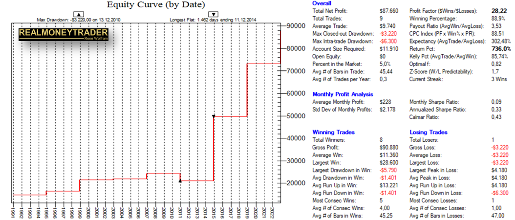 Dadurch, dass man hier mit dutzenden von Setups den Wahlzyklus dauerhaft ausnutzt, ist ein Streuungseffekt gegeben, der den Gesamt-Draw-Down eines „Wahlzyklus-Portfolios“ nochmals abmildert.