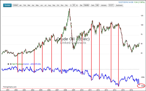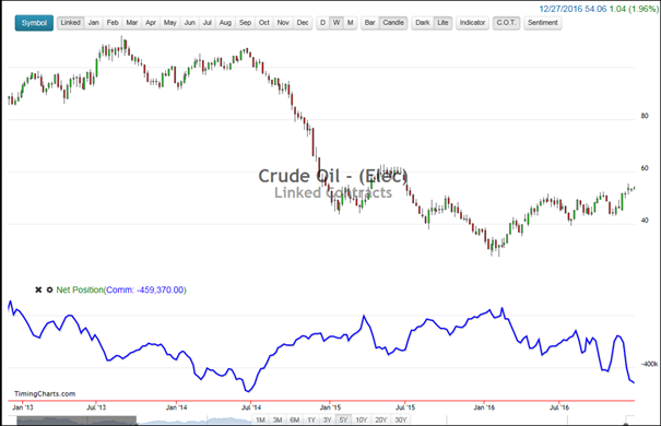 Eine traumhafte Frühindikation für den Einbruch der Rohölnotierungen gab es beispielsweise 2014 in den CoT-Daten für WTI Crude Oil. Die Commercials hatten die mit riesigem Abstand größte Netto-Shortposition aller Zeiten. Anschließend ging der Preis um mehr als 60% in die Knie. Ein mustergültiges CoT-Setup.